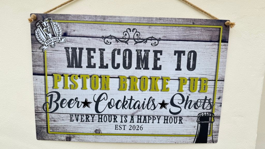 I love my cars and beer but always short of funds, so I had to have a name for my Bar area. Problem solved by getting a sign made for the patio.