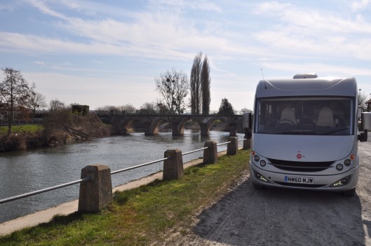We left the campsite at Le Mans on a cold but dry morning after saying goodbye to owners and wishing them all the best for the future. They have got a lot to do on the campsite but will be very rewarding. I would love to be in their shoes. Have always wanted to own a campsite, I know it’s hard work but talking to peaple that travel is so interesting. Our aim was to get just north of St lo which leaves us about an hour up to the ferry port from there. The sun was out the roads clear, although there was snow forecast but we should be ahead of it. We stopped at a supermarket on route to buy some wine, cheaper than buying it in the Uk, and a couple of other bits to see us through. 55 litres of wine later and a loaf of bread we headed for our last aire beside a river in St Fromond.