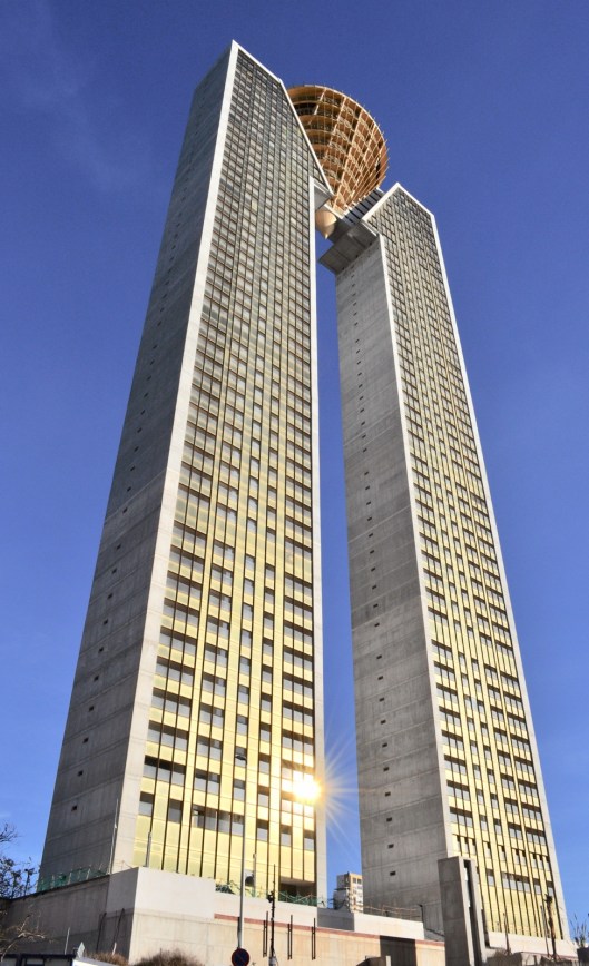 Another building I wanted to see close up was the Intempo building. To much to do that day so I biked out there today, it’s only a round trip of 12 miles. The Intempo building is a huge gold skyscraper. In 2005 a 92 million euro loan was obtained from Caixa Bank to begin the build. Work began in 2007 and should have finished in 2009. There were problems all along the way and eventually building stopped because the property developer filed for bankruptcy. The main building was done but still a lot more to do.