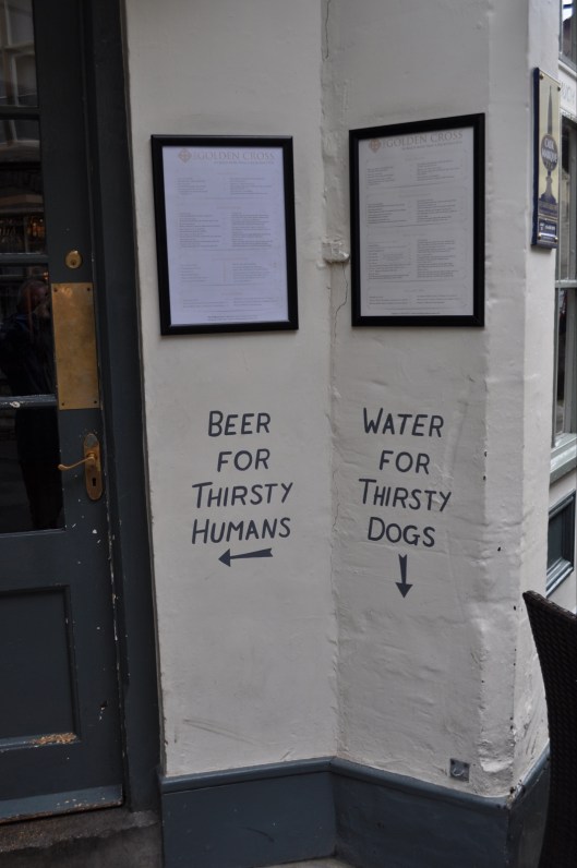 We walked around the town and had a coffee and a hot chocolate in one of the many cafes. Nikki loves charity shops so we had to visit one or two. She knew she was in a posh area because of the quality of cloths in the charity shops. I also pointed out they don’t smell of wee, like a lot of charity shops do. I loved this writing on the entrance to one of the pubs.
