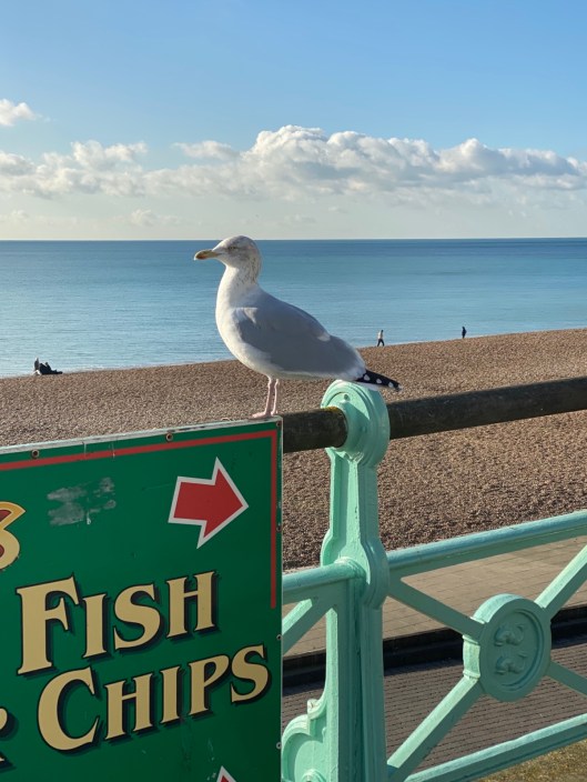 The next day was a beautiful sunny day again so we went for a walk down to see the sea. Blue skies and sea are always good in my book. This seagul knew which way to go for his dinner.