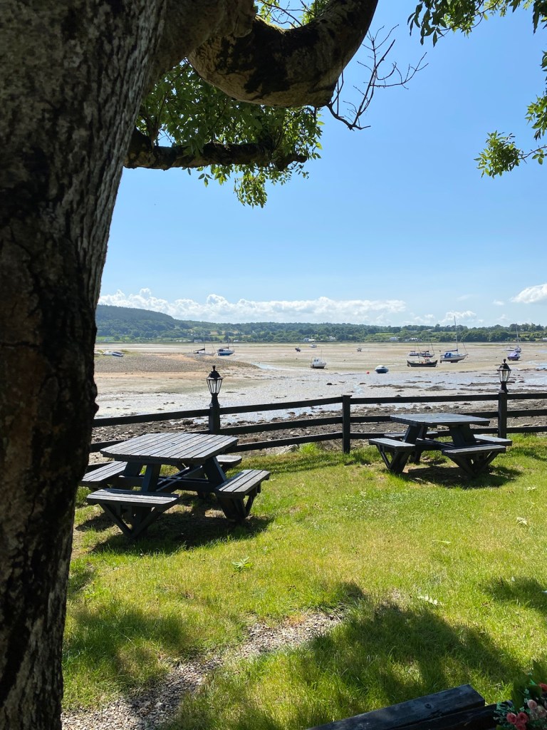 All Covid secure, Nikki had to queue again to get a table, I was guarding the bikes, well mine anyway. She got to the front of the queue and asked if we could have a table in the shade with space for the bikes. The waiter pointed to a table but said the bikes could go over there a completely different area, Nikki called me over to tell me this. My reply was sorry but I don’t leave my bike away from me. He then gave us another choice when he realised I love my bike which as it happens was a better view and in the shade for Nikki. The tide was out which was a shame as it would have been nicer but sometimes you just can’t have everything. A seat in the shade, Bikes within touching distance and a loverly lunch with a view and of course great company.