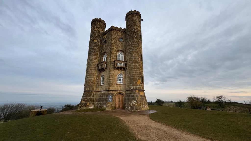 I wanted to walk up to the Broadway tower from site. I had no choice really because Nikki had the car but I need the exercise anyway. The tower is a 18th century folly built of limestone and ashlar, four storeys high. Twenty metres high and is hexagonal with three corner turrets. It opened in 1799. From the site to walk to it and back is five miles including a hill so an elevation of 814 ft was covered. I plan to do the walk again and make a bigger loop of it.