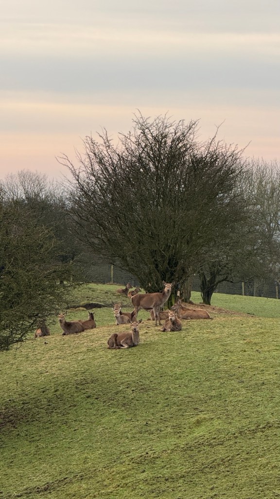I got up to the tower at 8.45am so no one else was about. It was so peaceful. There were a herd of deer in the field next to the tower, a kestrel did a fly pass and a little Robin came and said hello.