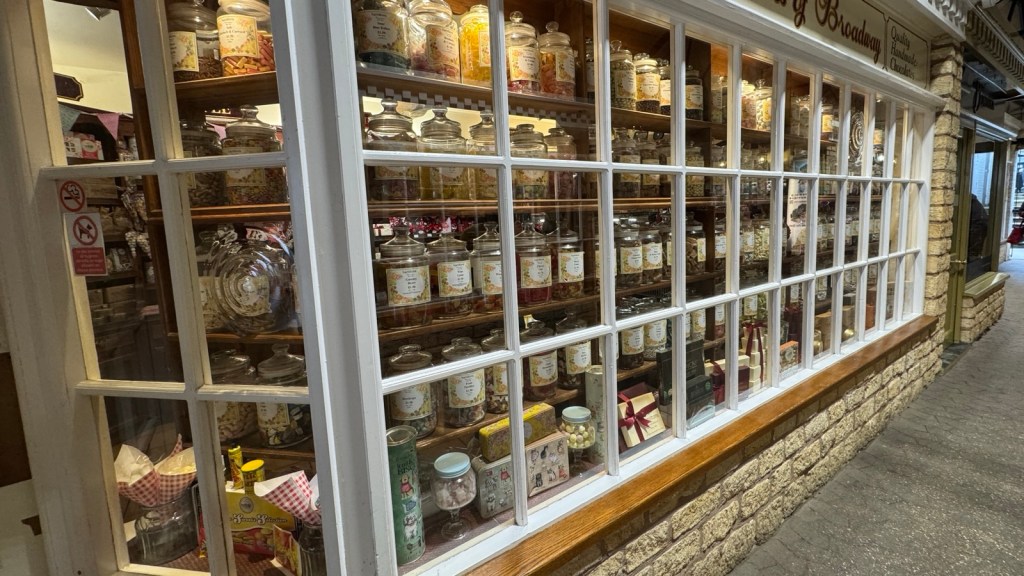The Broadway Deli shop looked fantastic with its display outside and a fiat 500 in the window. A proper sweet shop with jar after jar full of all your old favourite sweets and a drinks shop which I took a lot of interest in so will have to go back for further investigation. I am sure when Nikki gets back we will walk into the village and she will want to go in the charity shops. Being a very rich area the charity shops are normally full of better quality cloths etc and don’t smell of wee.
